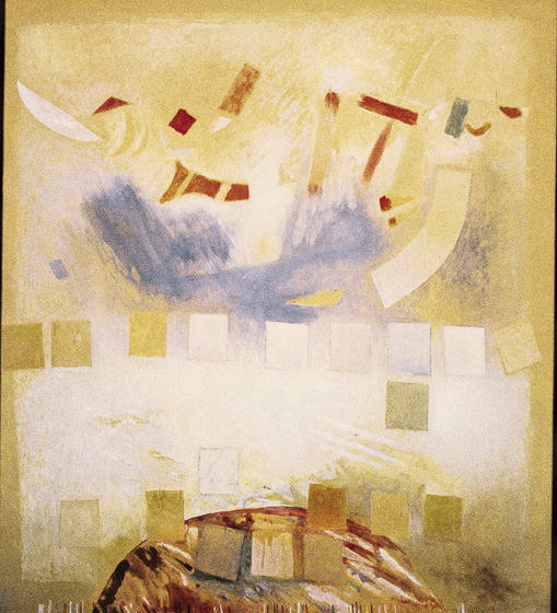 Il dipinto dal titolo “il sogno” esprime la serenità e l’abbandono del sonno di una bambina, la dolcezza e l’inquietudine delle sue visioni oniriche. L’intento era quello di far emergere questa particolare condizione dello spirito umano, mediante la costituzione di uno schema segreto scaturito dalla combinazione armonica di estesi percorsi lineari ad andamento curvilineo. Ho volutamente inserito intorno alla figura, con una scansione geometrica senza soluzione di continuità, elementi iconografici tratti da disegni eseguiti da bambini, perché mi sembrava il modo più efficace di evocare il mondo delle fantasie e dei sogni infantili.
